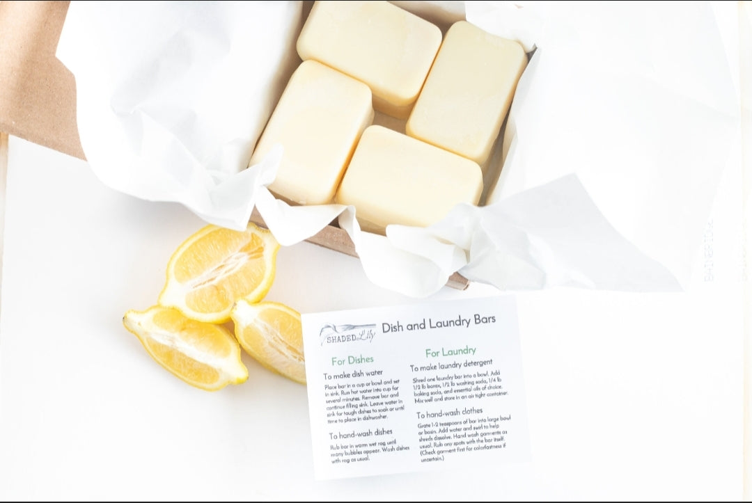 Made with simple, effective ingredients and no synthetic fragrances, our handmade soaps and natural cleaning products are gentle on your home—and tough on grime. From fresh lemon-scented dish bars to natural laundry soap and fabric-softening crystals, each product is crafted to clean beautifully without harsh chemicals or waste.