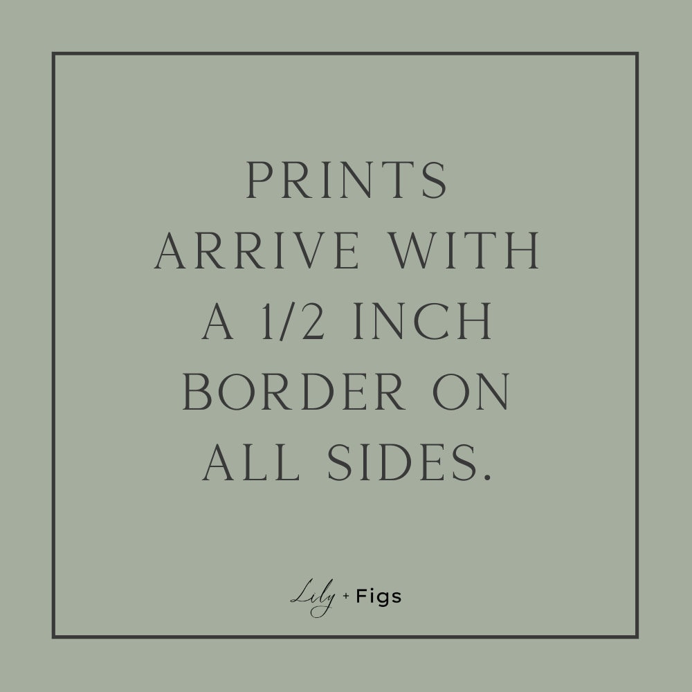 Available in multiple sizes, the print comes unframed with a 1/2" white border around the image for easy handling and framing.