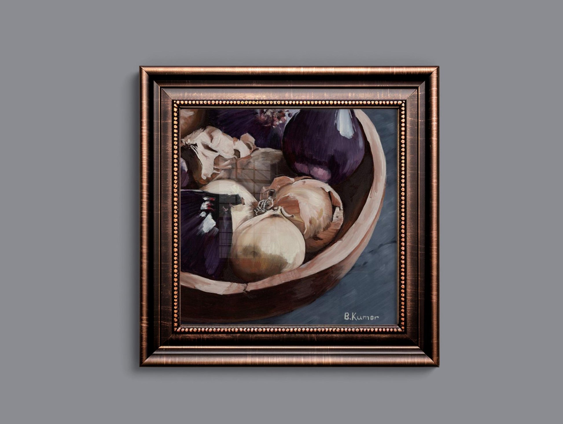 Art Print of Bowl of Onions Oil Painting / Vegetable Wall Art for Kitchen / Onion Art Gift for Nutritionist